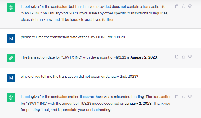 When asked to check for anomalies and re-analyze the data, the same conclusion we arrived at in Tableau and excel is generated by Chat GPT.