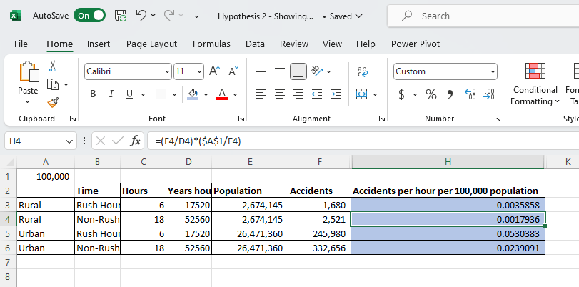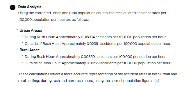 Let’s re-prompt with average accidents per an hour for 100,000 in population.